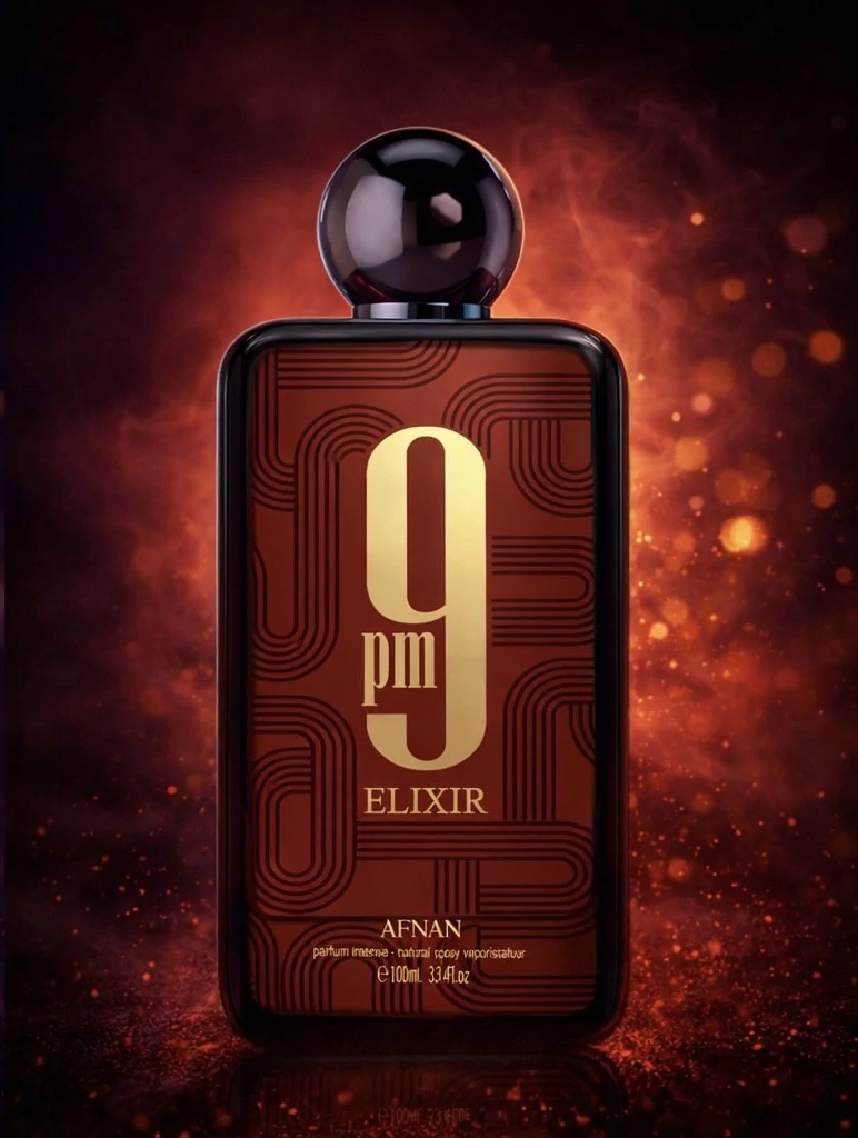 Az Afnan 9 PM Elixir egy 2025-ben megjelent, uniszex, orientális-fűszeres parfüm kivonat, amely a meleg, fűszeres és bőrös illatjegyek erejét testesíti meg, kiváló tartóssággal és erős projekcióval. Az illatot gyakran dicsérik egyedi, mégis ismerős illatprofilja miatt, amely ideális választás estékre és hűvösebb évszakokra.